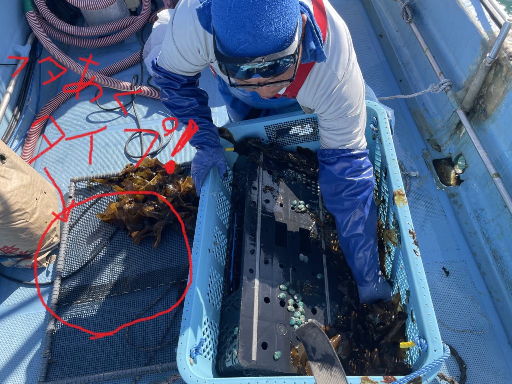 稚貝を育成し始めて5日目。アワビと餌の状態を確認しにこの男が行く…。