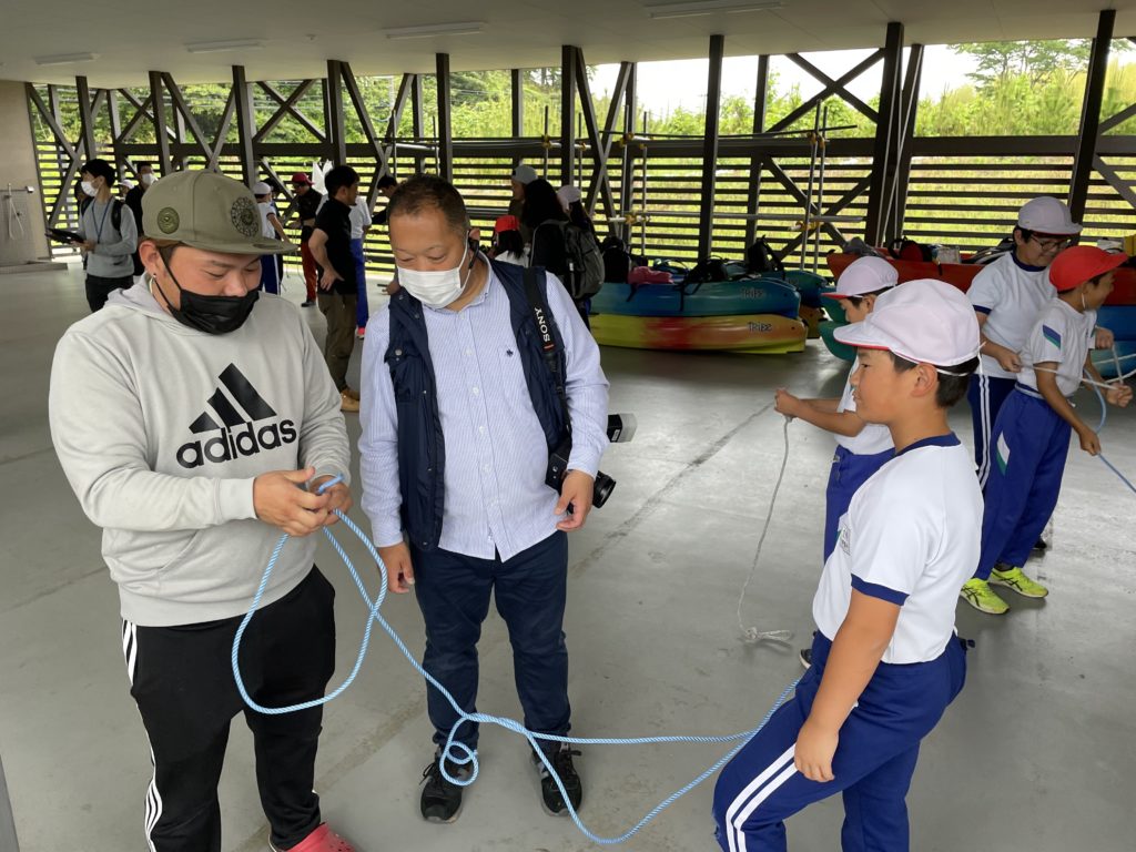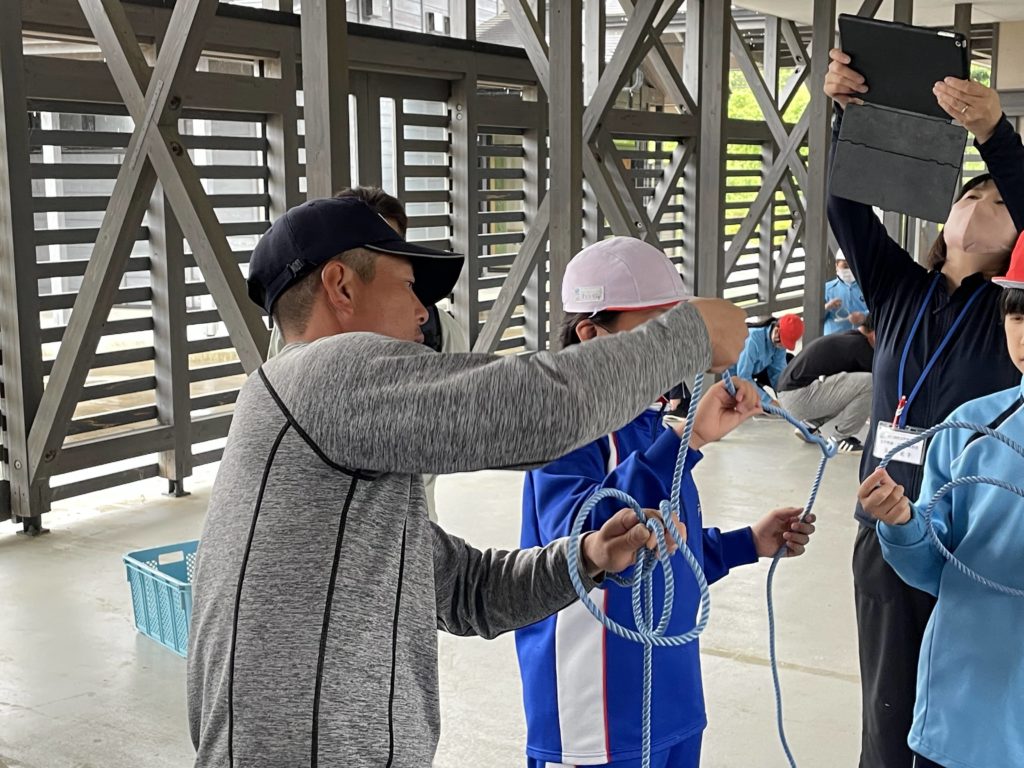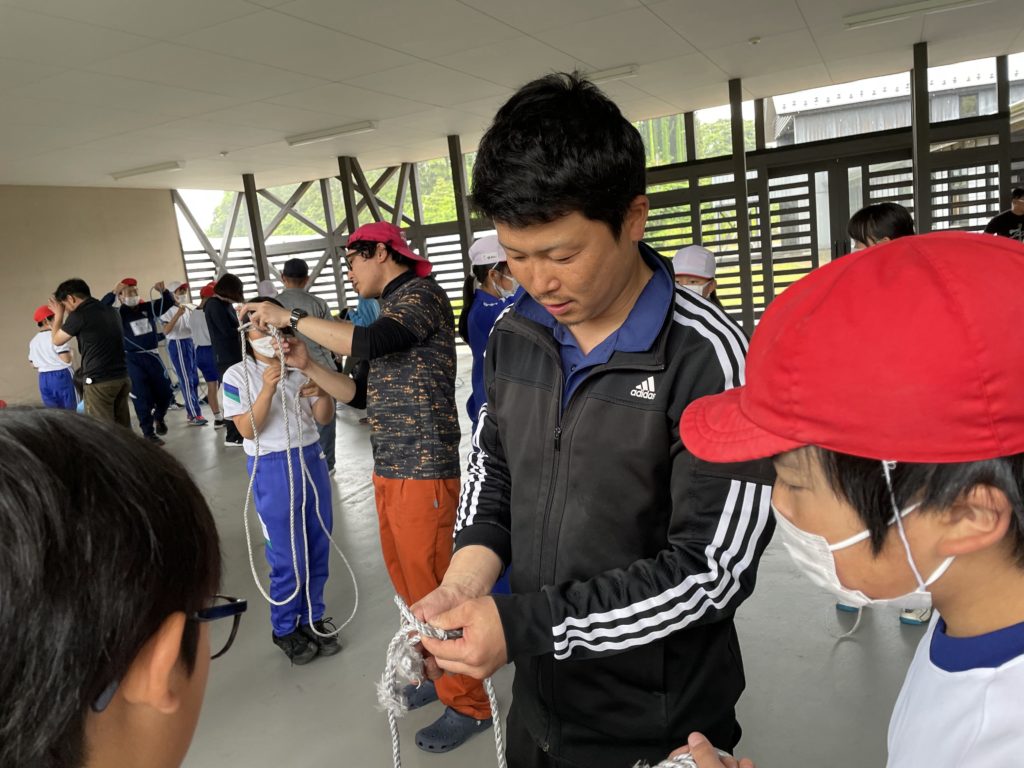 みんな真剣に結び方を聞いて実践しています。副会長の大介くんもわかりやすく伝える工夫を施しながらレクチャー。