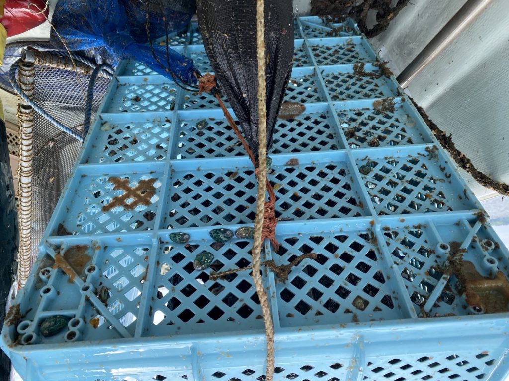 大カゴの掃除が難しくパレットの中や下に採れない斃死体がたくさんありそう。。。カゴの仕様については、今後検討の余地ありといったところですね。。。