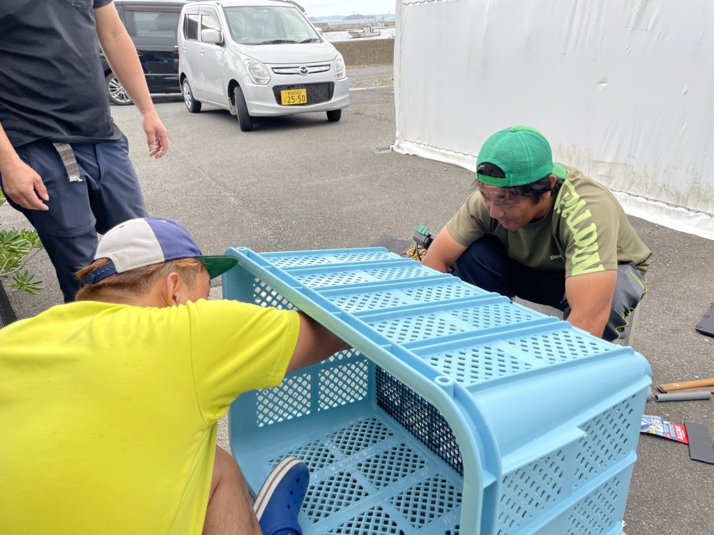 役員会後に成長をもっと早めるために生け簀カゴをバージョンアップさせることに。