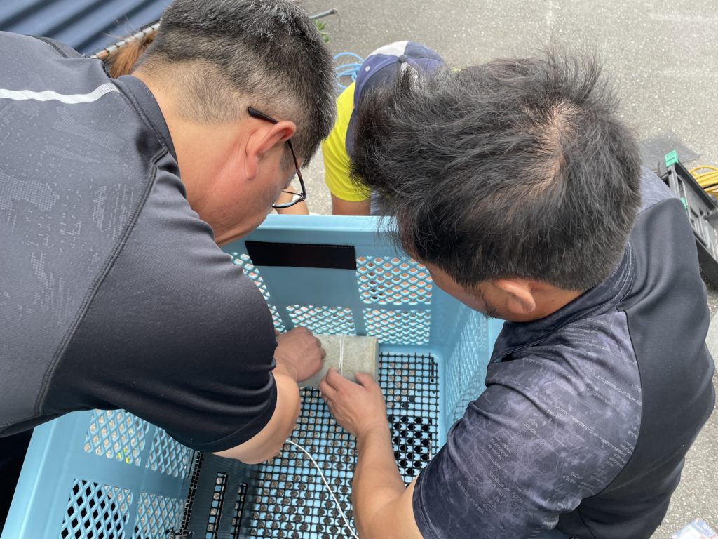 前回は経費をかけないようにということでパレットをぶった切って使用しましたが浮力がありすぎて沈みにくく、重いという課題を解決するために新たに改良を加えていきます。重石には、テストピースを使用することに。