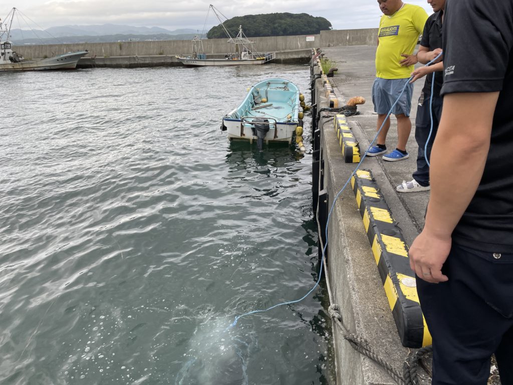 いい感じで沈んでくれました!これで生け簀カゴのver2の出来上がり!
